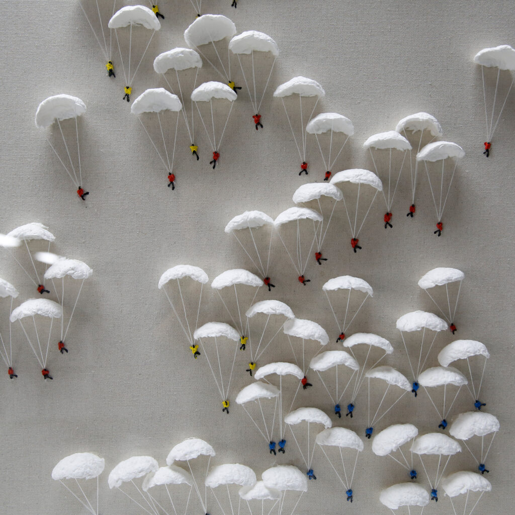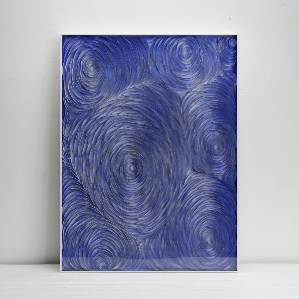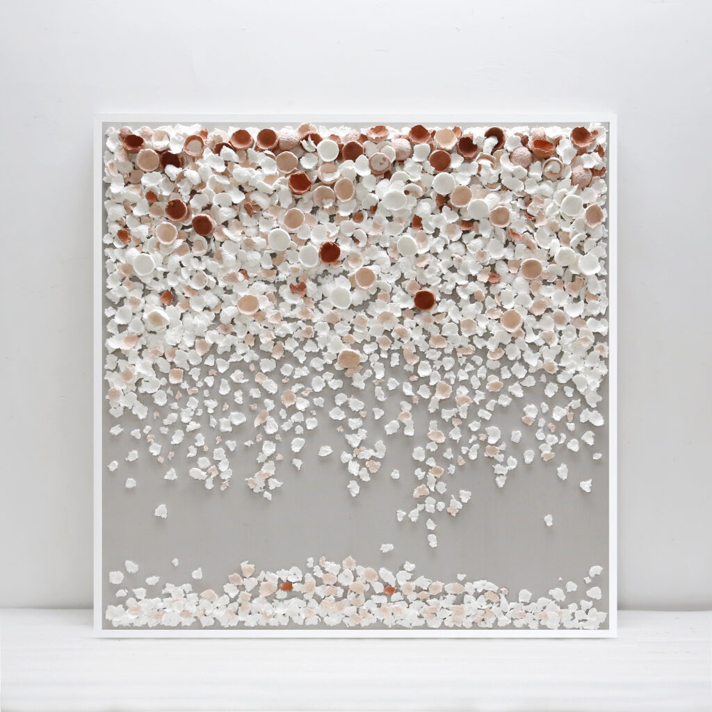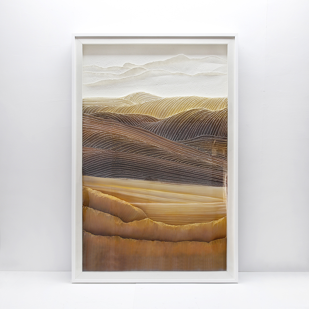 紙を重ねて貼り合わせることで立体感を生み出す、職人手作りの紙貼り絵技法。